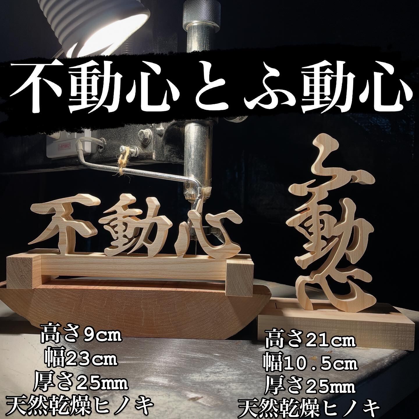 木の置物 不動心とふ動心 手書き文字 天然乾燥ヒノキ 作品選べます