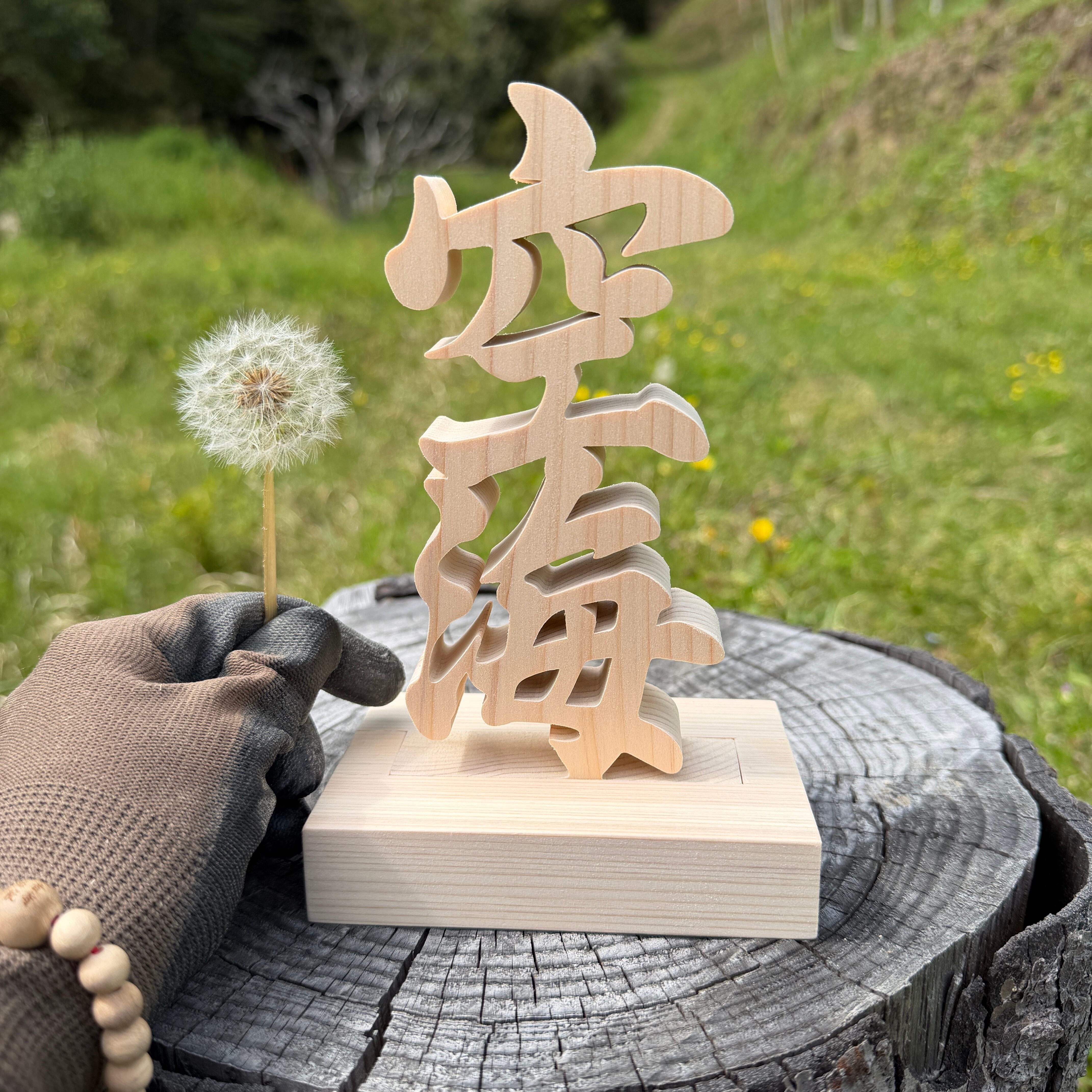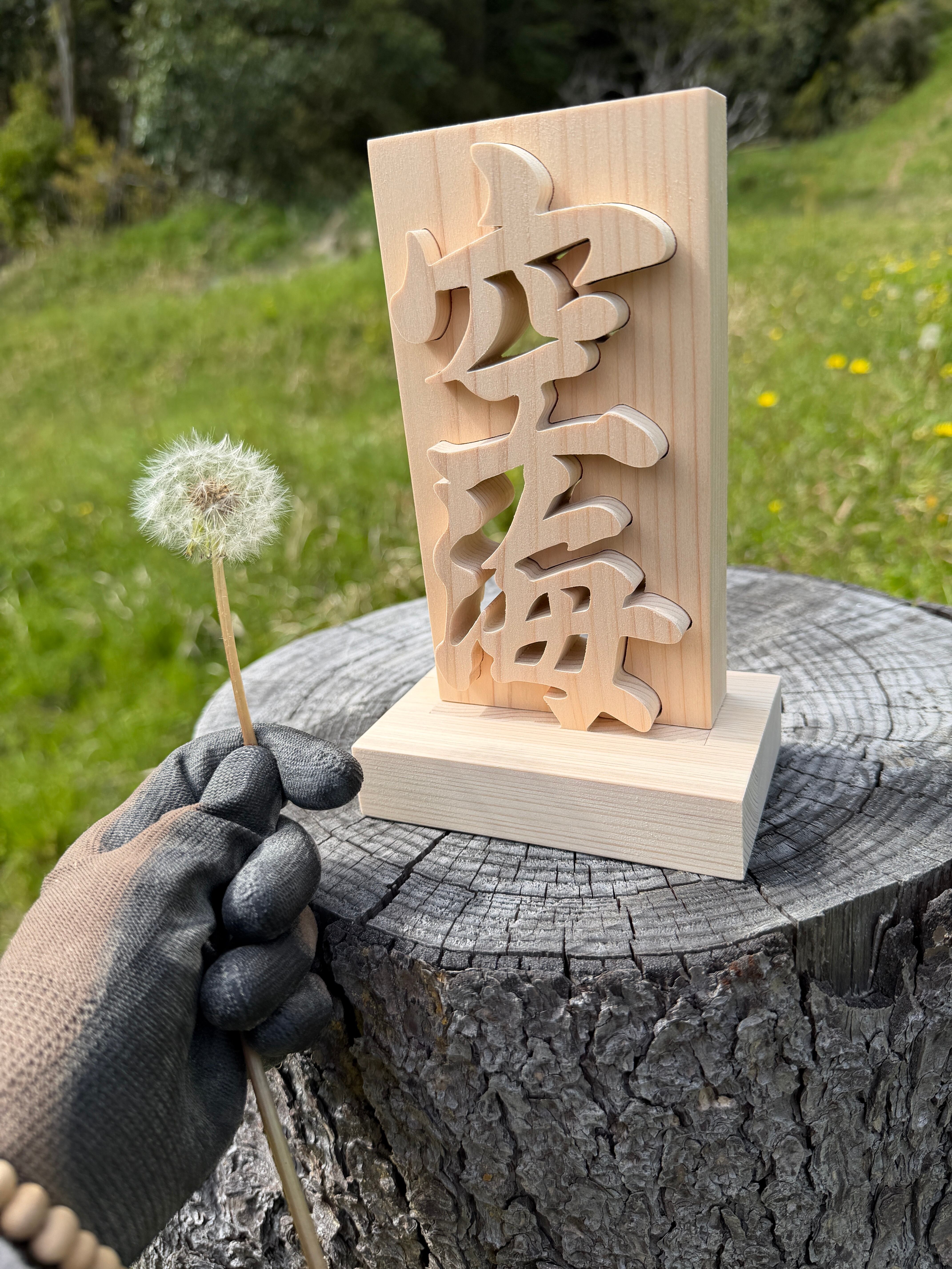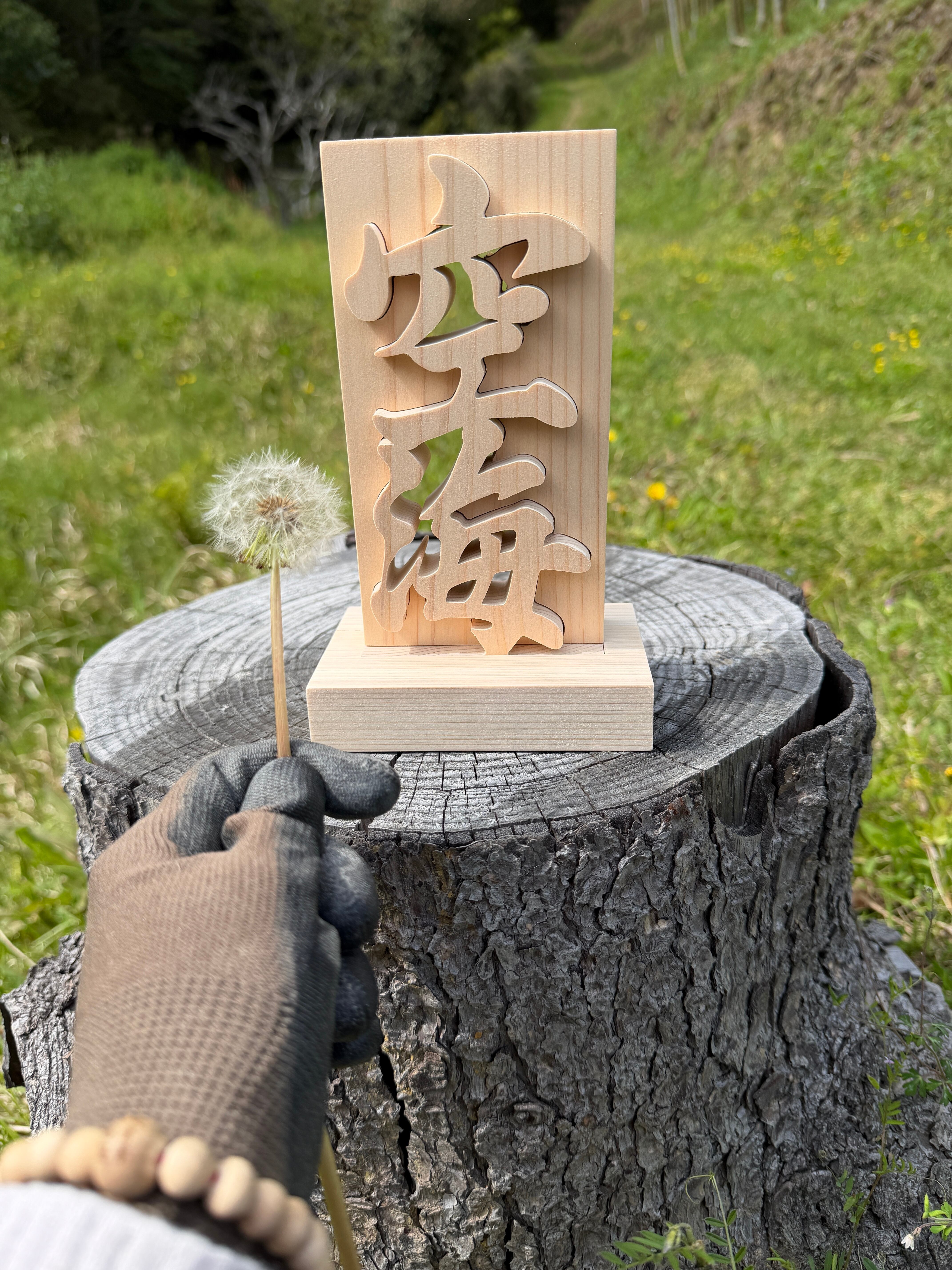 木の置物 空海 天然乾燥ヒノキ 弊社オリジナルデザイン