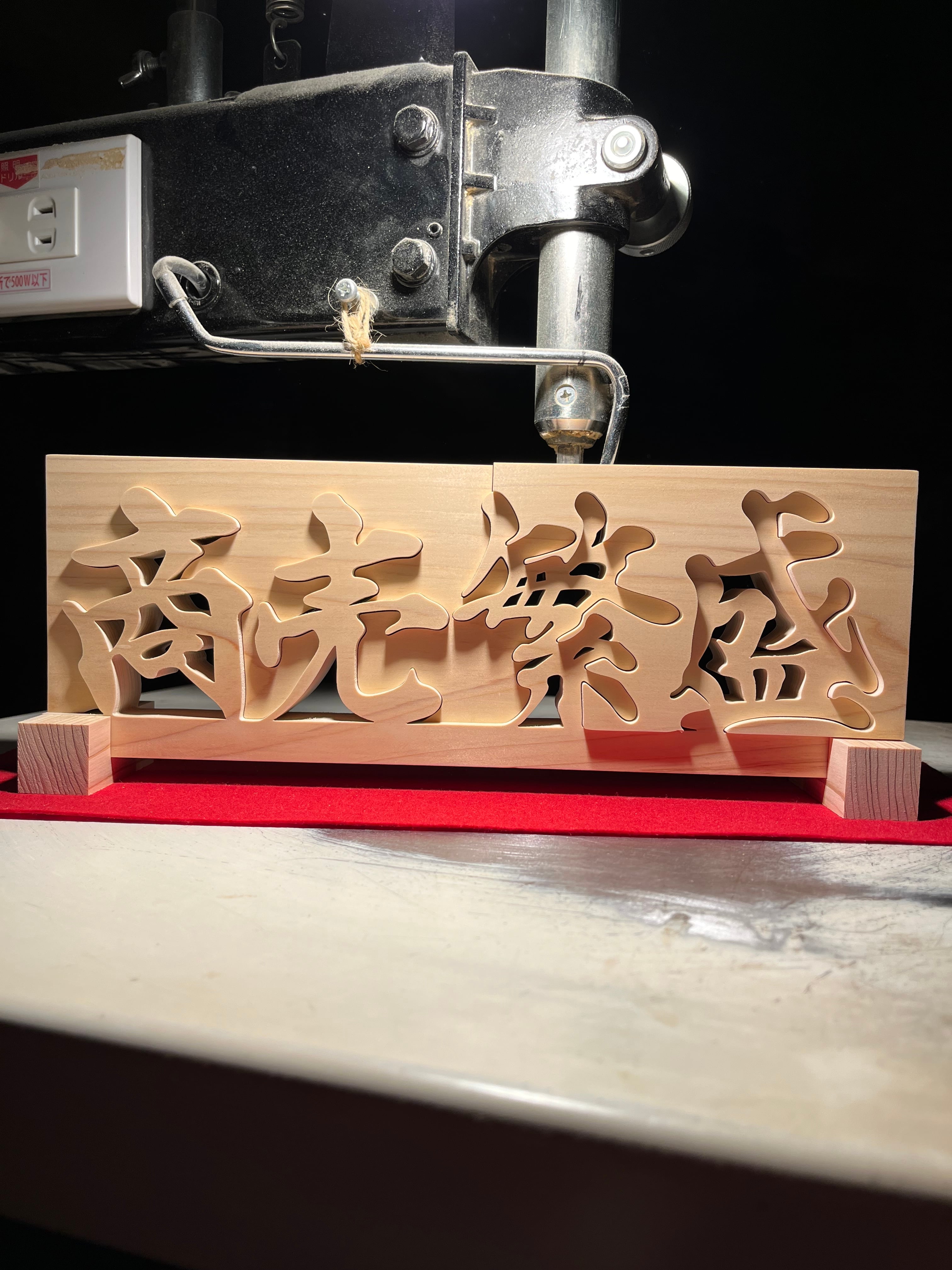 木の置物 商売繁盛4 手書き文字 天然乾燥ヒノキ