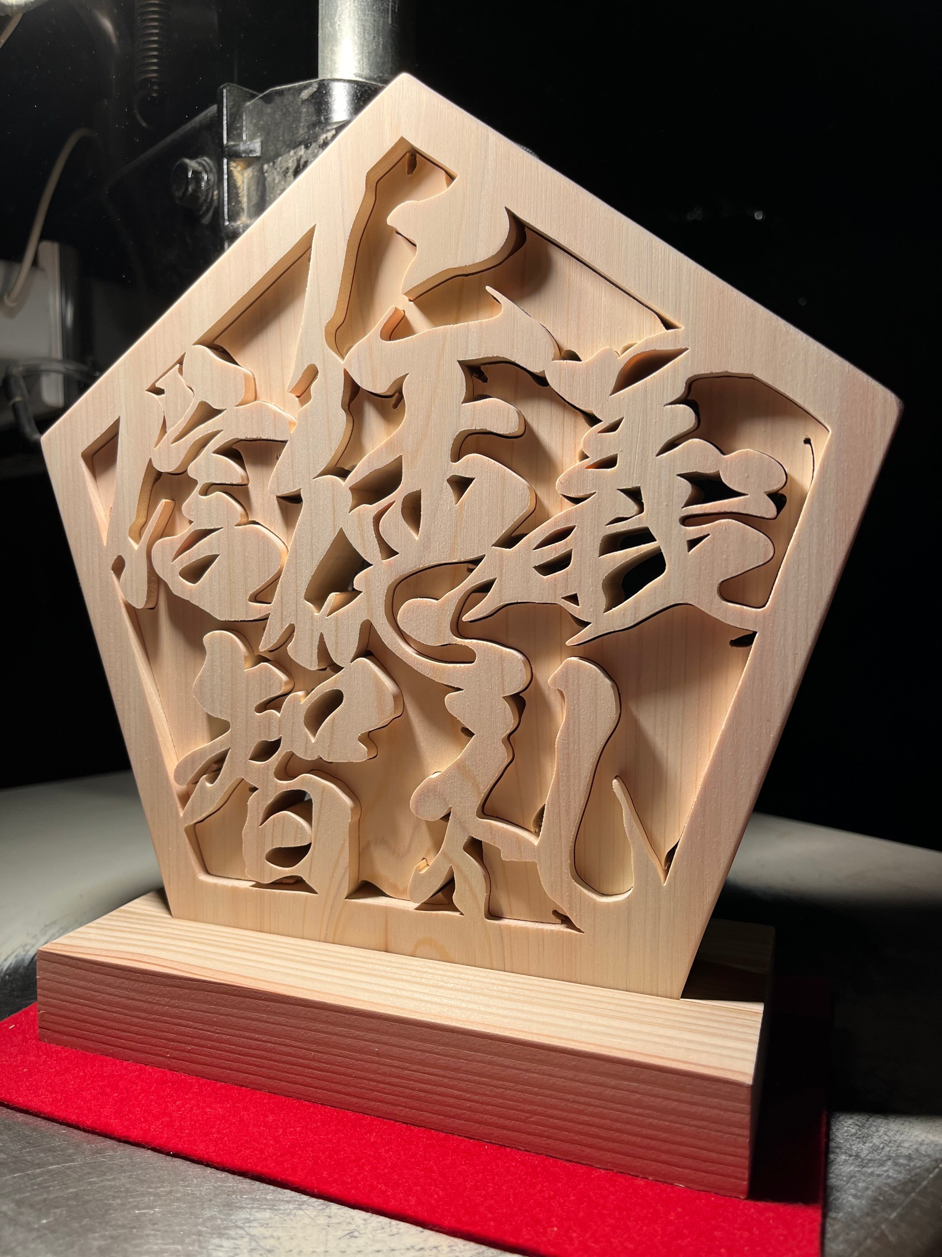 木の置物 五徳 仁義礼智信 天然乾燥ヒノキ